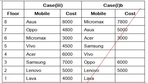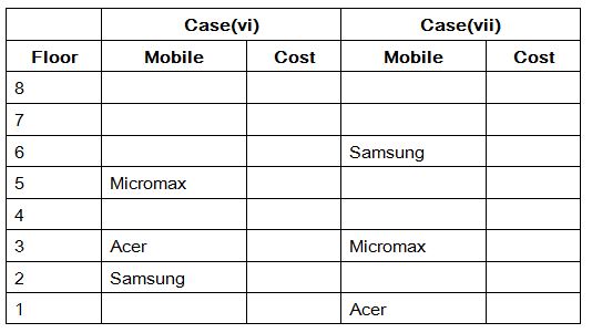 xvii). The Cost of Vivo mobile is 300 less than the mobile which used by the person who is living in floor number 7.