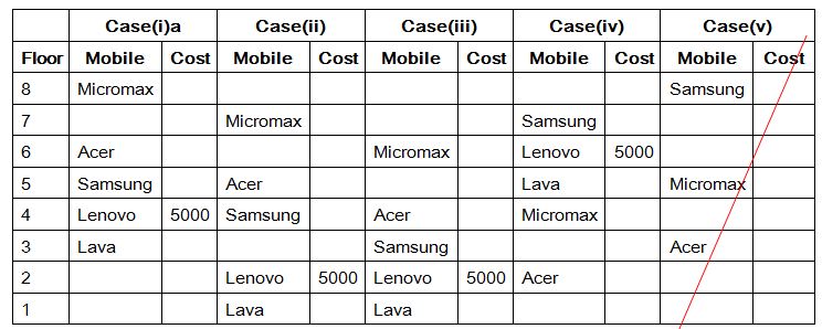 iv). The person who is using Acer lives one of the floor below the person who is using Micromax.