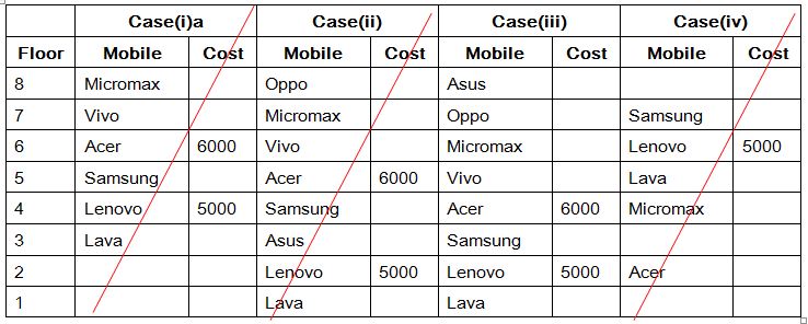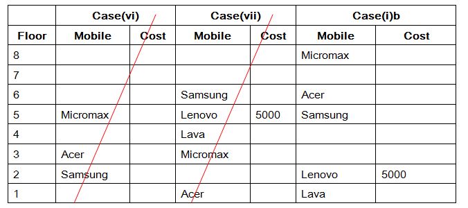 vi). The person who is using Lava mobile lives immediately below the person who is using Rs.5000 mobile.