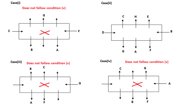 Eight people A, B, D, C, E, F, G and H are sitting in the rectangular table. The people sitting in the longer side facing outside of the table and the people sitting in the shorter side are facing inside the table. In such a way that three people are sitting in the longer side of the table and one people sitting in the shorter side of the table. All the given information is not necessary to be in the same order.