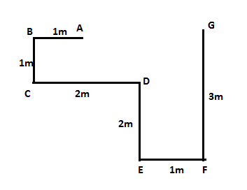 A stands 1m east of B, who stands 1m north of C. D stands 2m north of E. F stands 3m south of G. E stands 1m west of F. C stands 2m west of D.