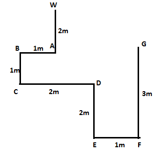 17) If W sands 2m north of A, then in which direction does W stands with respect to E?