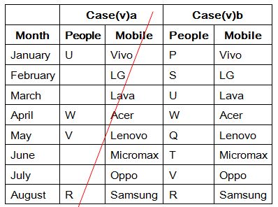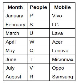 Eight people P, Q, R, S, T, U, V and W are using eight different mobiles and they all born in eight different months from January to August in the same year. The mobiles are namely Acer, Vivo, Oppo, Lava, Micromax, LG, Samsung and Lenovo. All the information is not necessary to be in the same order.