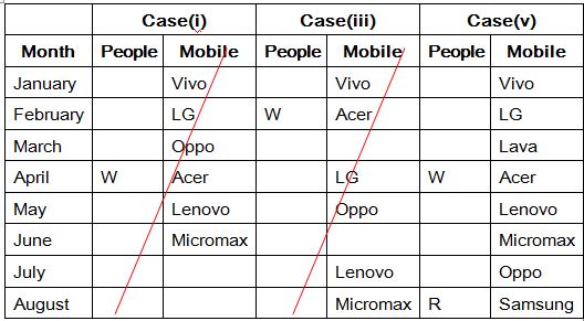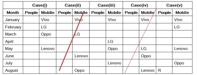 ii). Only two people are born between the person who is using Lenovo mobile and the person who is using LG mobile.