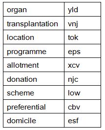 “organ transplantation location programme” is coded as “vnj tok yld eps”