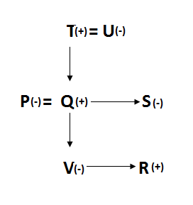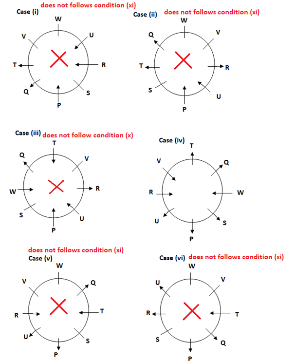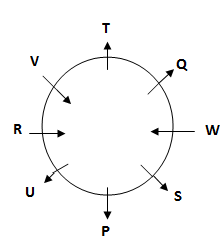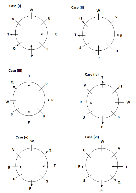 Eight people P, Q, R, S, T, U, V and W are sitting in the circular table. Some people faces centre while some people faces outside the centre of the circle, But they all not necessary to be in the same order.