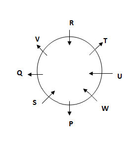 Eight people P, Q, R, S, T, U, V and W are sitting in the circular table. Some people facing centre, while some people faces outside the circle. But they are not necessary to be in the same order. Not more than two people sits together faces same direction.