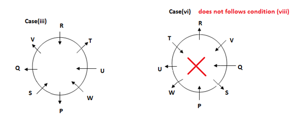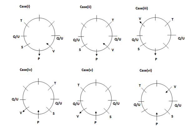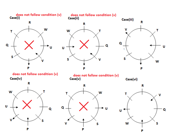 viii). R and S faces same direction. Q does not face inside the circle.