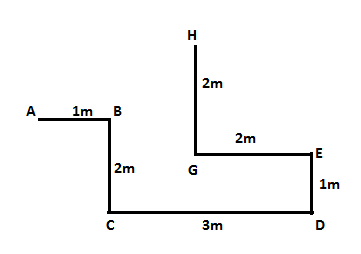 A stands 1m west of B, who stands 2m north of C. G stands 2m south of H. C stands 3m west of D. G stands 2m west of E. D stands 1m south of E.