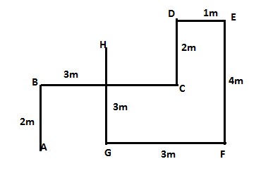 F stands 3m east of G. D stands 1m west of E. C stands 2m south of D. B stands 3m west of C. H stands 3m north of G. A stands 2m south of B. E stands 4m north of F.