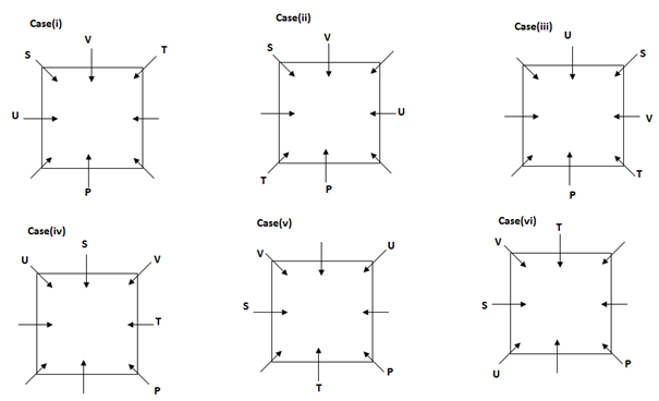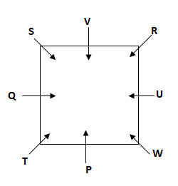 Eight people P, Q, R, S, T, U, V and W are sitting in the square table facing centre, in such a way that four people sits at the corner and four people sits at the middle of the table. But they are not necessary to be in the same order.