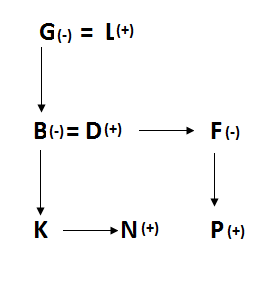 There are three generations in the family.B is the mother of K. F is the aunt of N, who is the brother of K. G is the mother of B. P and K are cousins. L has only one child. D is the married male in the family. L and F are not a married couple. P is only son of F.
