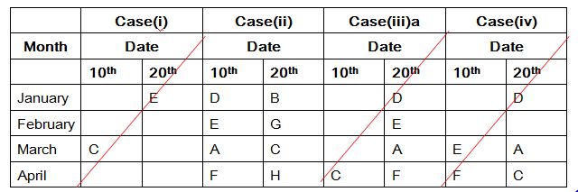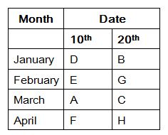 Eight people A, B, C, D, E, F, G and H are in the class. Each of them was born either on 10th or 20th of the month. The months are namely January, February, March and April. But they are not necessary to be in the same order.
