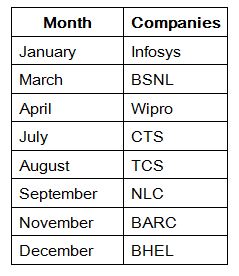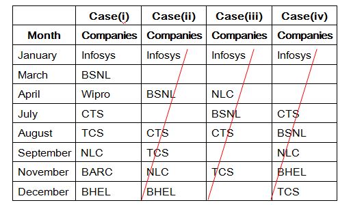 Only two companies have achieved maximum target between BSNL and TCS. NLC has achieved maximum target in the month which contains less than 31 days. Infosys has achieved maximum target in the month of January. BSNL has achieved the target one of the month before TCS.   Only one company has achieved maximum target between NLC and CTS, who has achieved the target one of the month before BHEL. BRAC has achieved the target one of the month after Wipro. Wipro was achieved the target one of the month after March. The BARC is not the last company to achieve the target.