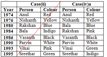 v) Nishanth is elder to Rakshan and Nishanth likes Yellow colour.
