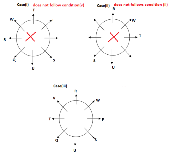 Eight people P, Q, R, S, T, U, V and W are sitting in the circular table facing outside of the circle. But they are not necessary to be in the same order. Only two people sits between U and W. S sits second to the left of Qand U does not sit second to the right of T. Only one person sits between T and R, Who sits immediate left of W. S is neither an immediate neighbour of T nor R. P and V are not an immediate neighbours. V is not an immediate neighbour of W.