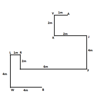18) What is the shortest distance between J and B?