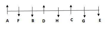 Eight people A, B, C, D, E, F, G and H are sitting in the linear table. Some people are facing north, while some people are facing south. But they are not necessary to be in the same order. Not more than two people sits together faces same direction.