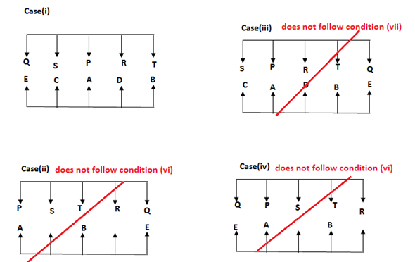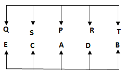 Ten people Sitting in the two parallel rows facing each other. In Row I: A, B, C, D and E are facing north. In Row II: P, Q, R, S and T are facing south. But they are not necessary to be in the same order.