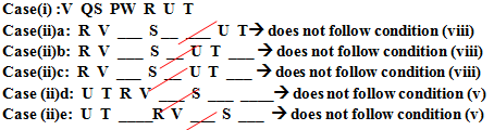 Eight people P, Q, R, S, T, U, V and W are sitting in the linear row facing south. All the information is not necessary to be in the same order. Only two people lives between S and R. U sits immediate right of T. Only one person sits between Q and P. S sits second to the left of V. V does not sit to theleft of U.Neither U nor T isanimmediate neighbour of S. W is not an immediate neighbour of Q. Both W and R do not sit at end of the row.