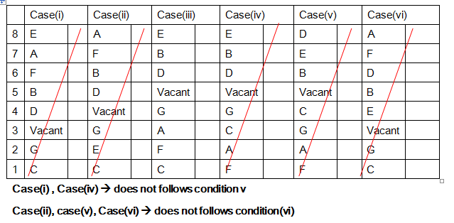 i). Only one person lives between G and B, on which B lives one of the floor above vacant floor but not immediately above Vacant floor.