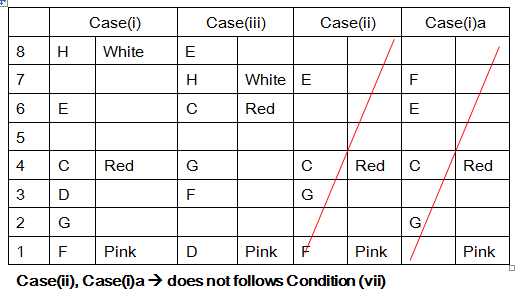 iii). Only two persons lives between F and C, who likes Red colour.