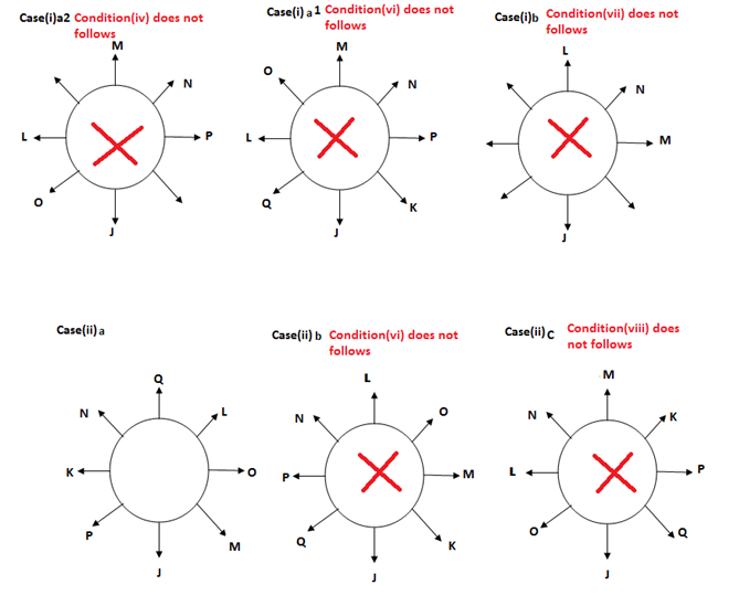 vii). Only two persons sits between P and O, who sits to immediate neighbour of L.