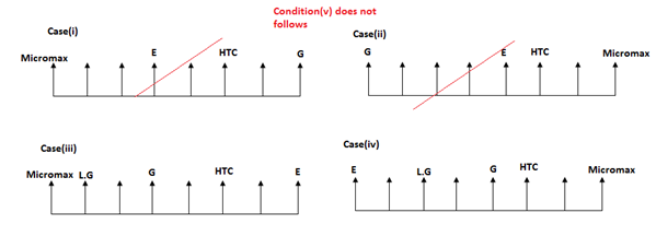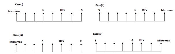 i).The person who has HTC mobile sits second to the left of the person who sits at extreme right end of the line.