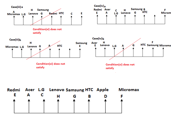 A, B, C, D, E, F, G and H are the eight persons sits in a linear table. They all have different mobiles namely HTC, Acer, L.G, Lenova, Apple, Micromax, Redmi and Samsung. They all sitting in a linear row facing north, but not necessarily in the same order