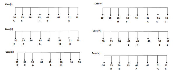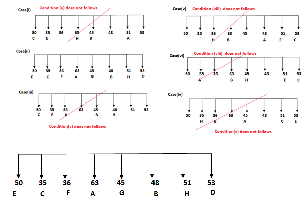 A, B, C, D, E, F, G and H are the eight persons sits in a linear row facing south. They all not necessary to be in the same order. They all in the different ages like 50, 35, 36, 63, 45, 48, 51 and 53. They all necessary to be sit in the same order from left to Right on the ages given above.