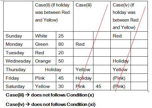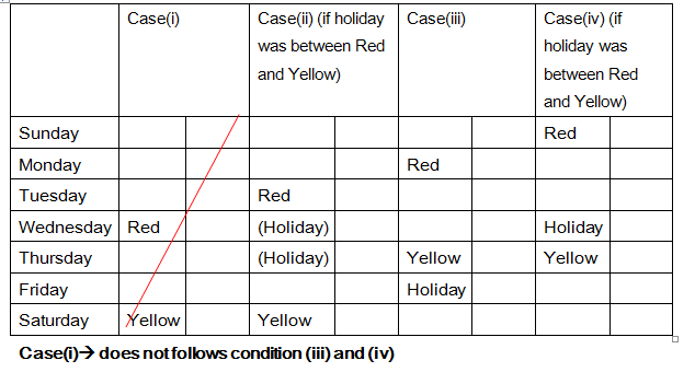 Case(i) Case(ii) (if holiday was between Red and Yellow) Case(iii) Case(iv) (if holiday was between Red and Yellow)