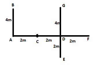 B stands 4 meter north of A, who stands 4 meter west of D. C stands 2 meter east of A. F stands 2 meter East of D, who stands 2 meter north of E. G stands 6 meter north of E.