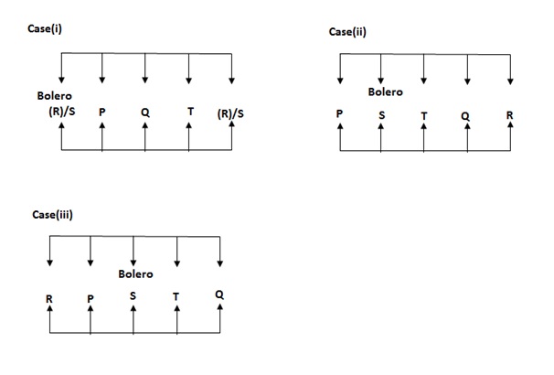 i). The person who has Bolero sits second to the right of one who faces Q.