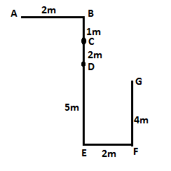 A stands 2 meter west of B, who stands 1 meter north of C. D stands 2 meter south of C and 5 meter north of E. F stands 2 meter east of E and 4 meter south of G.