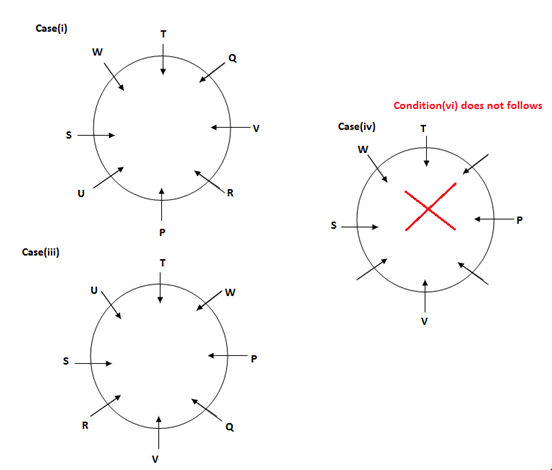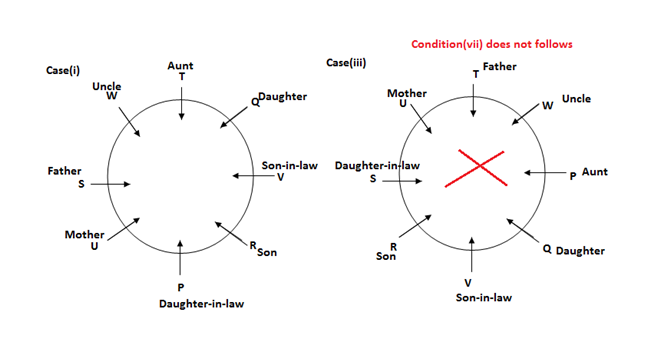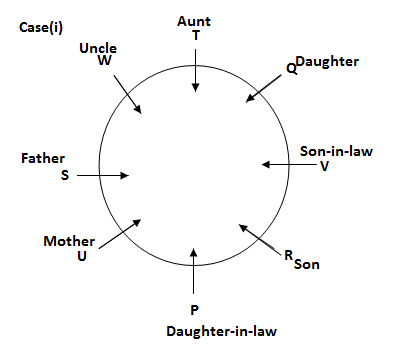 P, Q, R, S, T, U, V and W are eight persons sitting in the circular table all facing inside. They all interrelated to each other. All eight members are Mother, Father, Uncle, Aunt, Daughter, Son-in-law, Son and Daughter-in-law of Abdul. They all necessary to be in the same order.