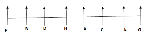 A sits second to the left of E, who is an immediate neighbour of C. Only two persons sits between C and D. F sits second to the left of D, either one of them sits at extreme end of the line. H sits second to the right of B, who does not sit at extreme end of the line.