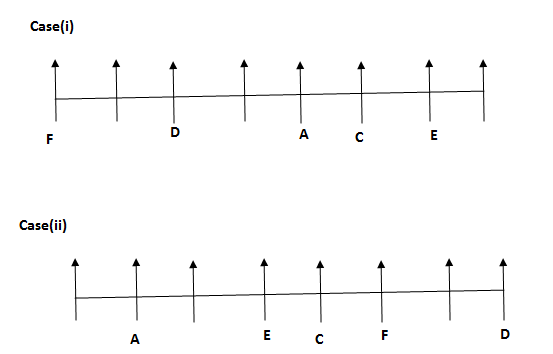 i). F sits second to the left of D, either one of them sits at extreme end of the line.