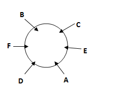 6). A, B, C, D, E and F are six persons sitting in the circular table facing towards centre. Who among the following person sits second to the right of C?
