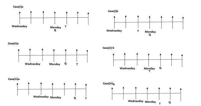 ii). Only two persons sit between the person who took leave on Wednesday and Q.