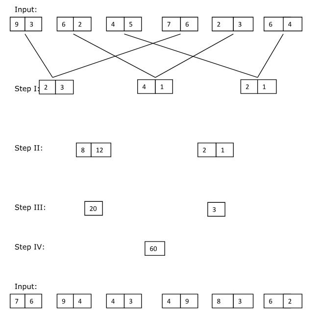 Step 2: The multiplication of both the values in the first block with the first number in the second block and the values in the third block is multiplied with the second digit in the second block.