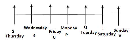 Seven persons P, Q, R, S, T, U and V are sitting in a linear table and all of them are facing north. They all took leave a day in a week but not more than one person took leave in the same day. The week days started from Monday to Sunday. All the information is not necessary to be in the same order.