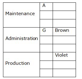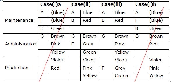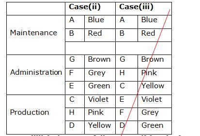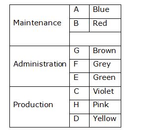 Eight persons A, B, C, D, E, F, G and H are working in three different departments namely Maintenance, Administration and Production. They all like different colours viz., Blue, Green, Red, Grey, Yellow, Violet, Pink and Brown. All the given information is not necessary to be in the same order. Not more than three persons are from same department.