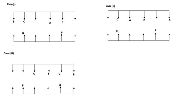 iii). Only two persons sits between Q and P and neither of them sits at extreme ends of the row.