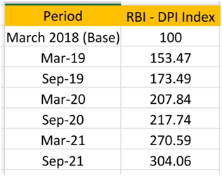 - The index for September 2021 stands at 304.06 as against 270.59 for March 2021.