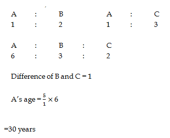 2) A’s age is twice that of B’s Age and Thrice that of C’s age. The difference between ages of B and C is 5, and then what is the age of A?