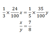 8) एक संख्या के 24% का एक तिहाई, एक अन्य संख्या के 35% के 1/5 वें भाग के बराबर है। दोनों संख्याओं का अनुपात क्या है?