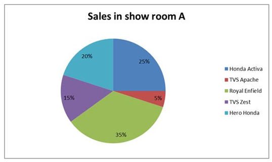 The given pie chart shows the percentage of sales of different brands of two wheelers in showroom A in 2019.