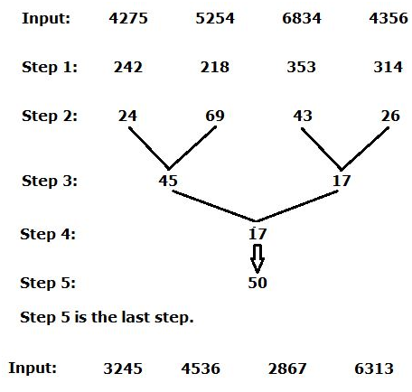 Step 5:Â Sum of the digits which is changed to its square value, 1+7 => 1+49 =50.