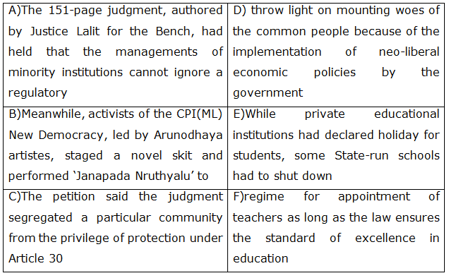 (A-F): The 151-page judgment, authored by Justice Lalit for the Bench, had held that the managements of minority institutions cannot ignore a regulatory regime for appointment of teachers as long as the law ensures the standard of excellence in education.