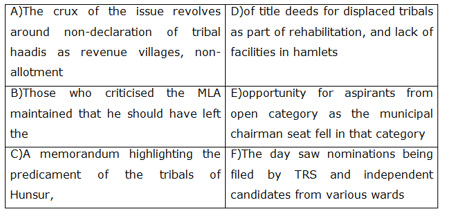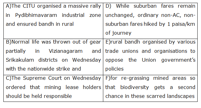 From the given options only B-E,C-F is matched and make a meaningful sentence. The correct answer after matching will be